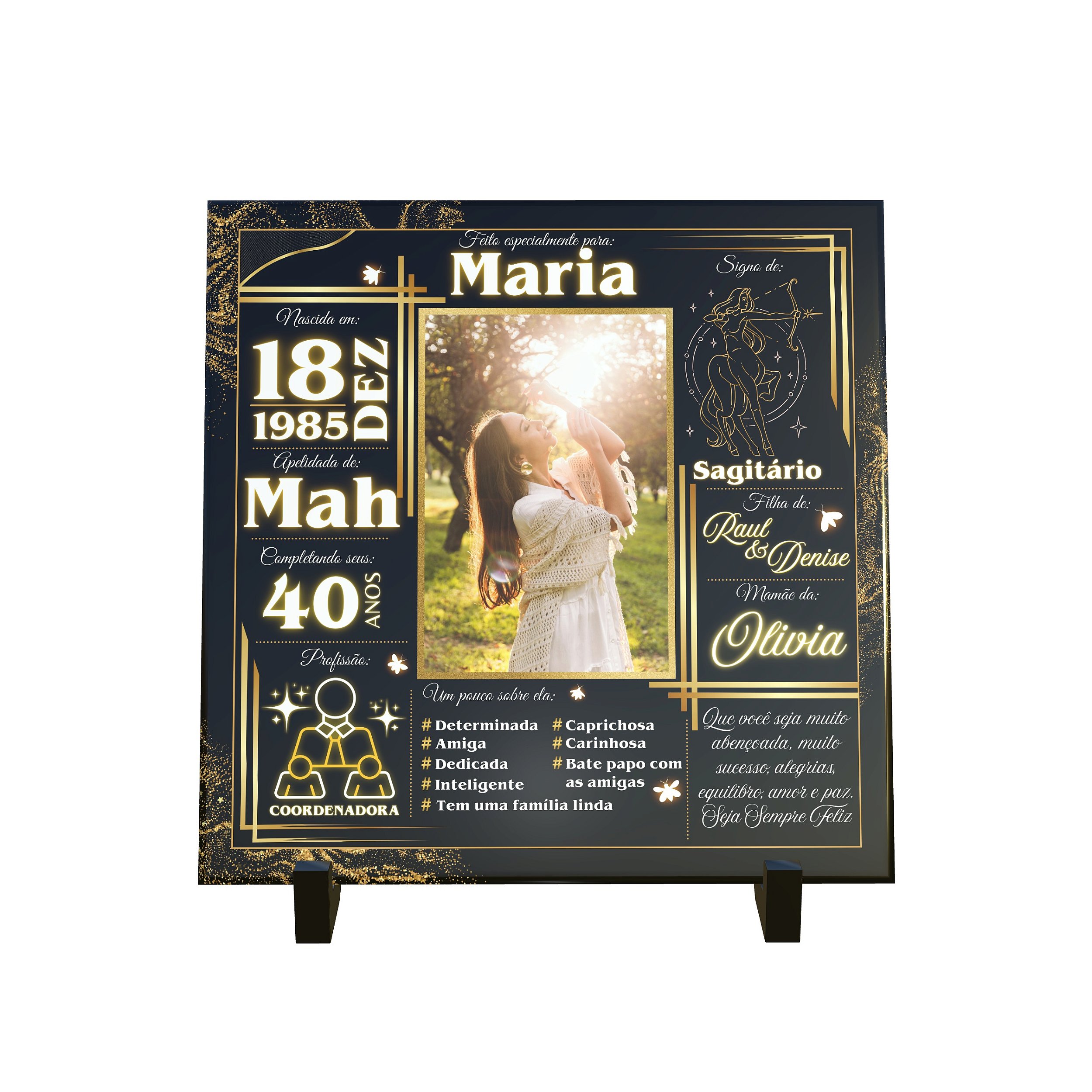 Ideal para presentear em aniversários, homenagens e datas especiais, transformando memórias em uma peça decorativa única e significativa.