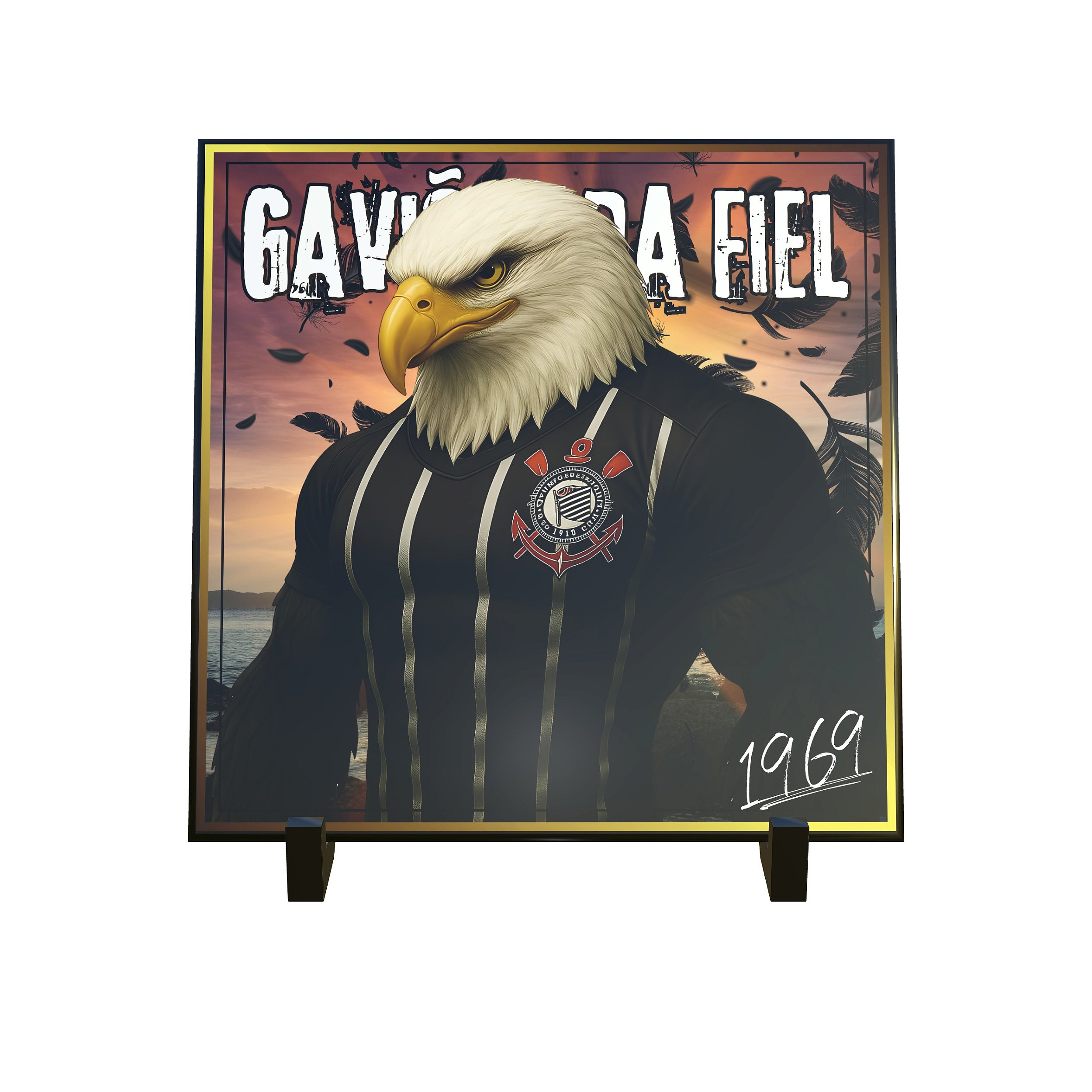 Este azulejo decorativo foi criado para representar a força, a garra e a fidelidade do torcedor alvinegro paulista. A arte apresenta um gavião imponente, símbolo de coragem e vigilância, vestindo as cores tradicionais em uma composição intensa e cheia de personalidade.